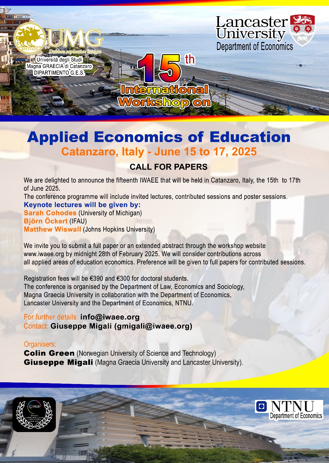 The conference is organised by the Department of Law, Economics and Sociology, Magna Graecia University in collaboration with the Department of Economics, Lancaster University and the Department of Economics, NTNU.